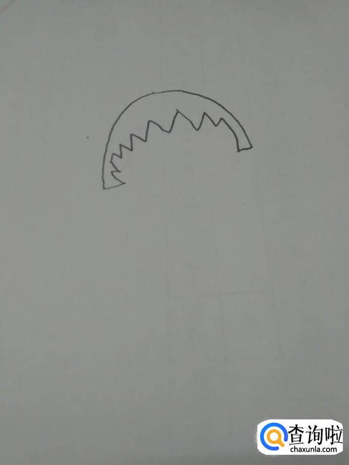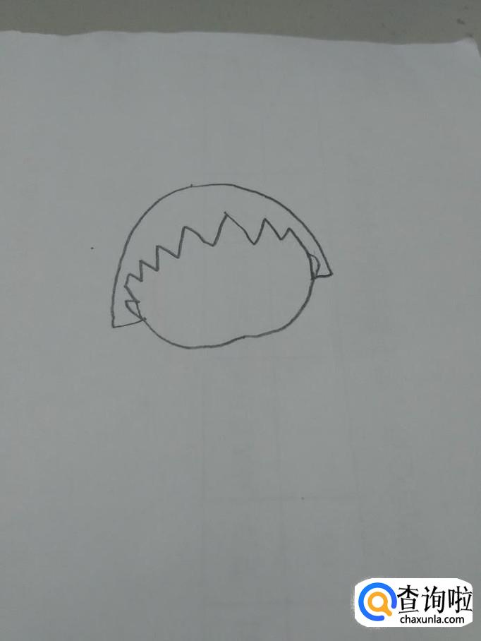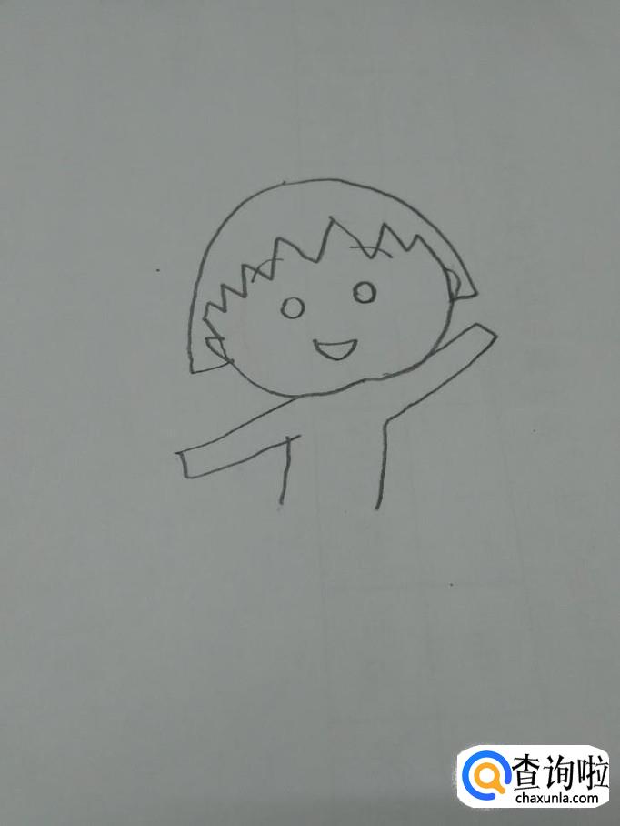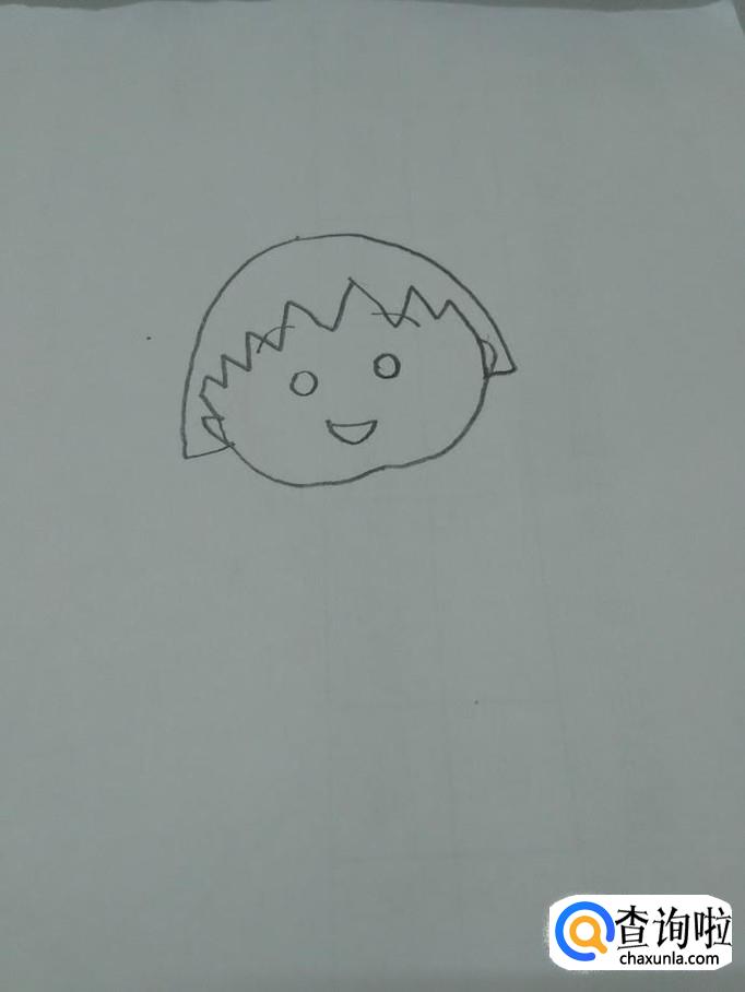 画动漫人物,个人喜好先从头发画起,因为头发是每个动漫人物的特点。先画一个半圆,是她的头型,再从内侧画一排锯齿状的线,这是小丸子特有的发型。