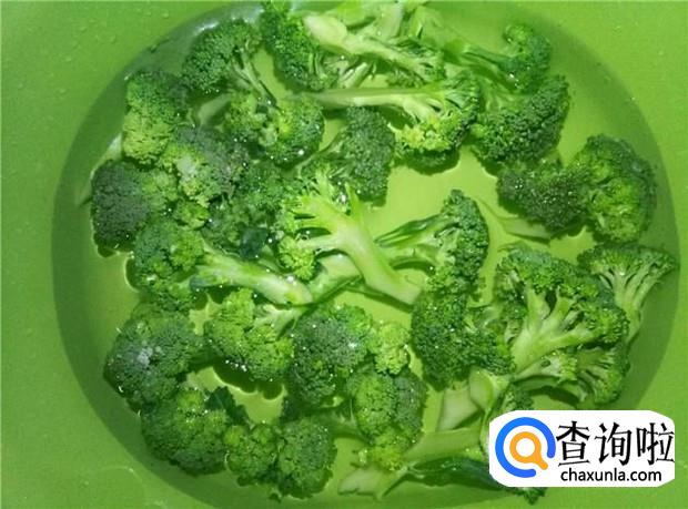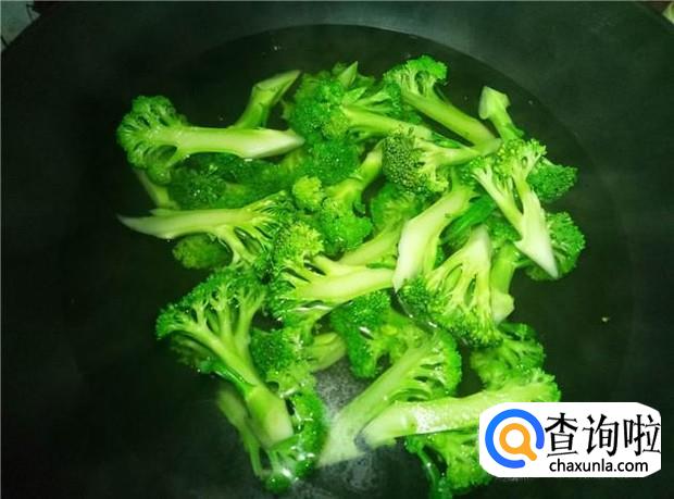 然后锅里烧开一锅开水,把西兰花倒进去,烫三分钟,捞起来备用。