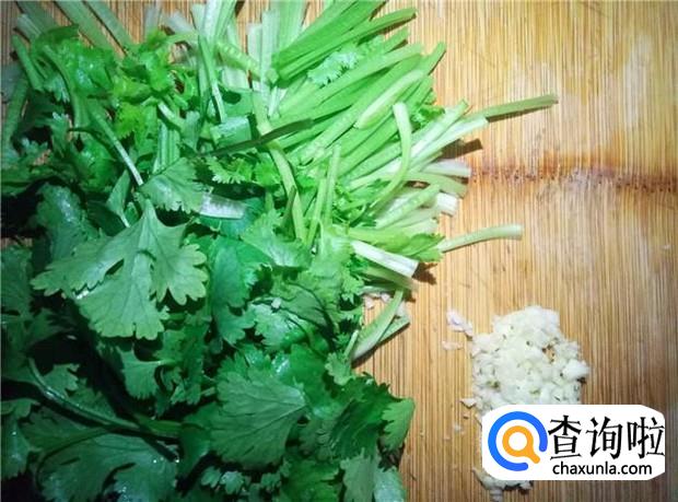 西兰花均匀铺在下面,把香菜铺在上层,即可开始享受美味的凉拌西兰花了。