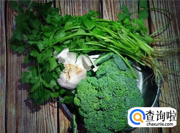 准备好所有材料:西兰花一颗、芹菜几根、蒜头两瓣。