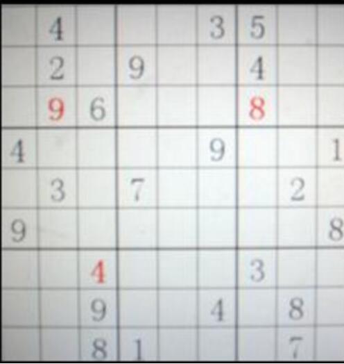 三星分轨——先看右下和右中两个小九宫格中,各有一个8,右上的小九宫格中,从右至左,三列中往下看都有8了,所以8必在此宫中最左一列,而最左一列5和4下只有一个空位,自然必定是8!再看左边三个小九宫格中,同理,1和3列中均有9,而当中一列最上的九宫格内只有一个空位,是9无疑!同理,左下小九宫格中的4也是如此推理填入。