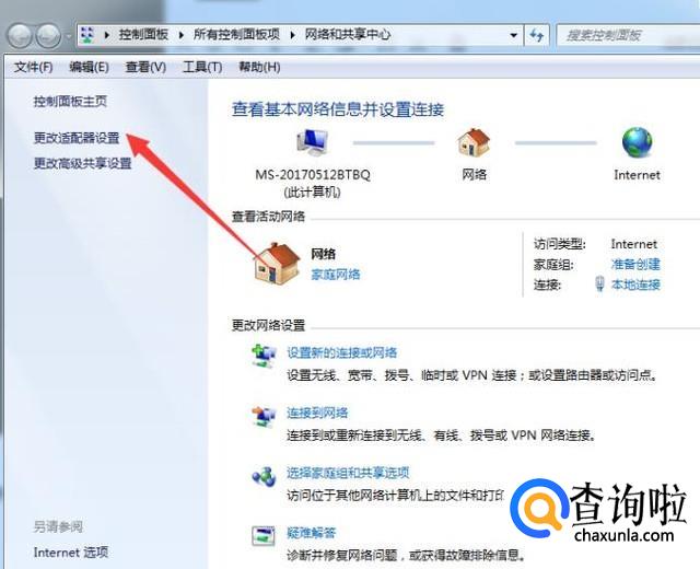 到网络连接面板之后,点击左侧的更改适配器设置。