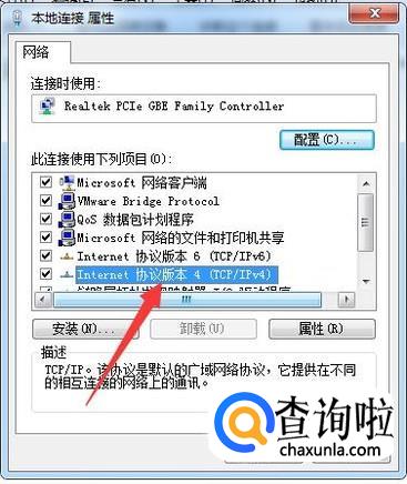 在出现的本地连接属性界面。鼠标双击internet协议版本4.进入IP和DNS设置界面。