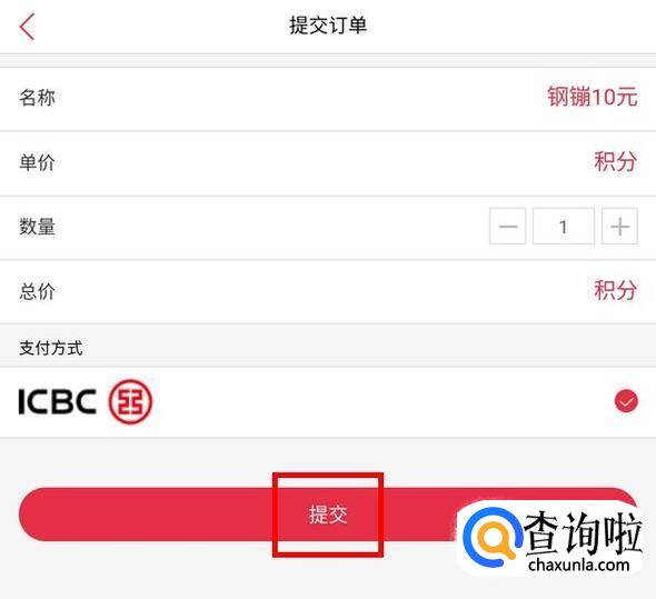 订单页面可以修改购买数量,确认所消耗的积分数量无误,点击提交;