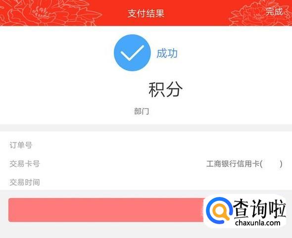 再次确认积分数量,没有问题后,点击确认付款,提示支付成功后,可点击完成,返回查看订单详情;