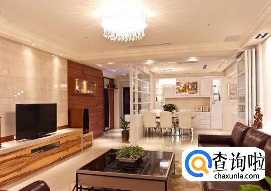 客厅在单元房内是比较大的房间,要从房间的一角找拍摄角度,把房间内五面墙体和地板全拍摄进画面之中,这样显得房间特别宽敞,客厅天花板上的灯是点睛之笔,要打开,营造出明亮、和谐的气氛。