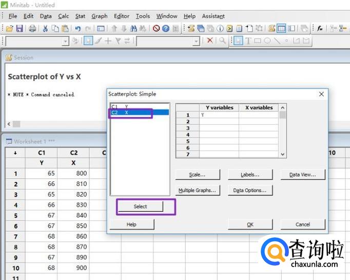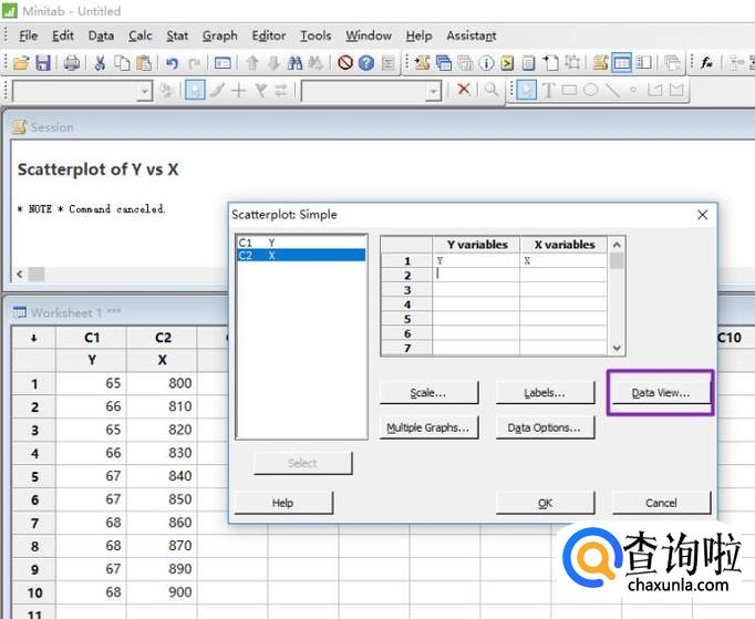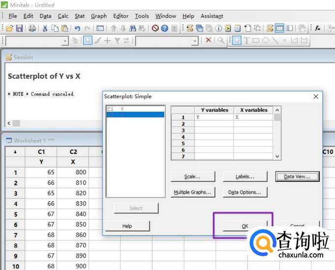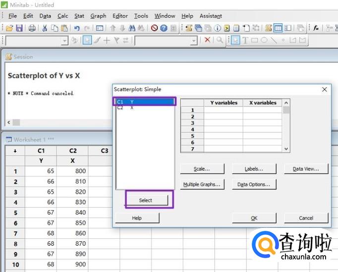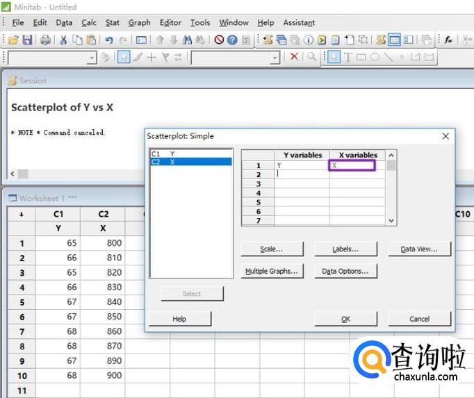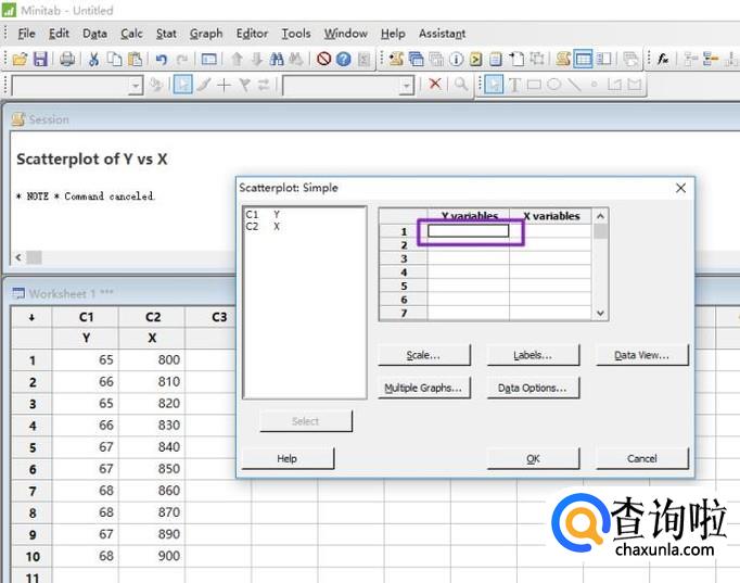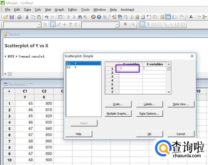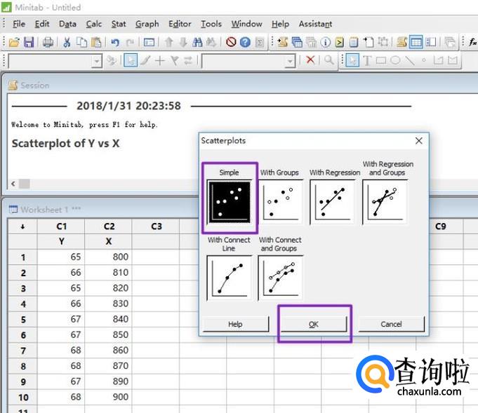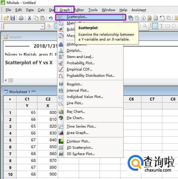 点击菜单栏中的Graph,点击选择ScatterPlot;