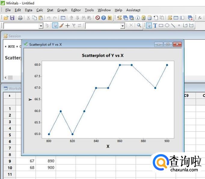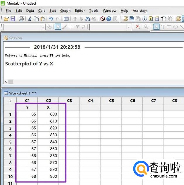 我们点击打开Minitab英文版,然后将相关数据录入表格内,如图所示;