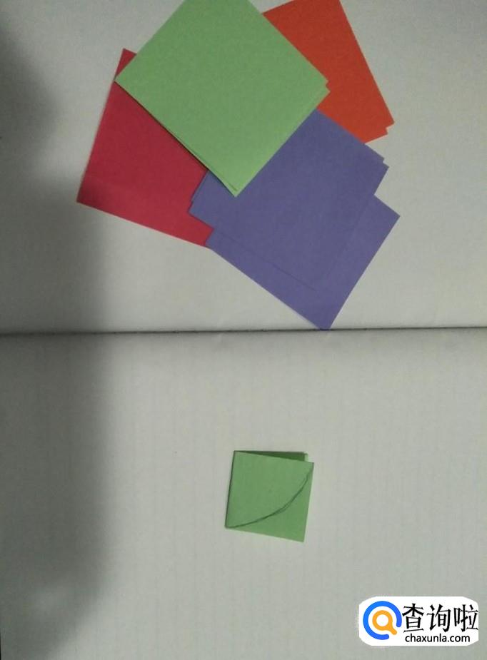 选择其中一张纸,对折两次,形成下列的一个小正方形,然后用圆规画一个圆弧出来,如下图2所示