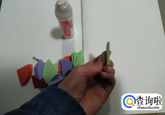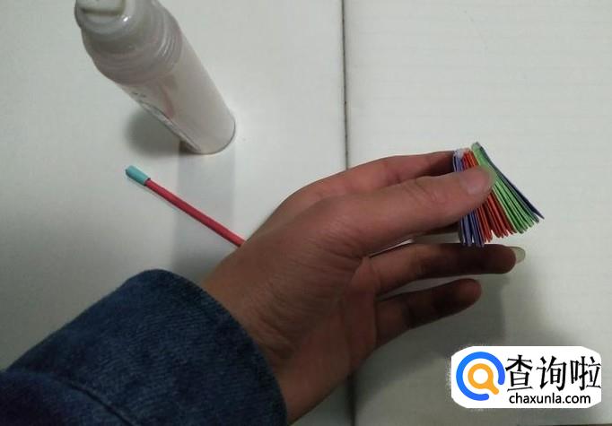 然后我们用另一种颜色的纸卷一根圆棍,末部用胶水粘起来