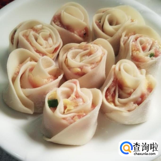 做玫瑰饺子,最少是用三张皮,最多用五张饺子皮,少了卷不起来,多了很难熟。