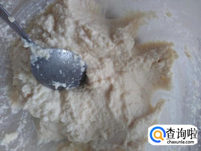 开火下油,因为糯米粉容易粘锅,所以油量要放多点,然后用勺子把适量的粉糊装到锅里,锅里的粉团要保持一点距离,因为糯米粉一碰上就会粘一起。