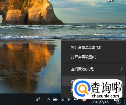 右击任务栏右下角的“音量”图标,选择“打开音量混合器”项,如图所示。