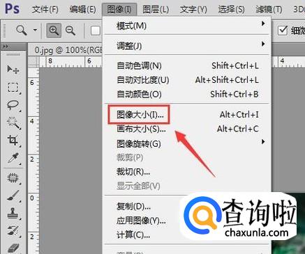 点击图像选项在其子级菜单里找到图像大小选项,如图所示: