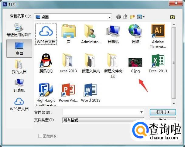 打开ps按下Ctrl+O键在弹出的打开对话框内找到我们的图片,如图所示: