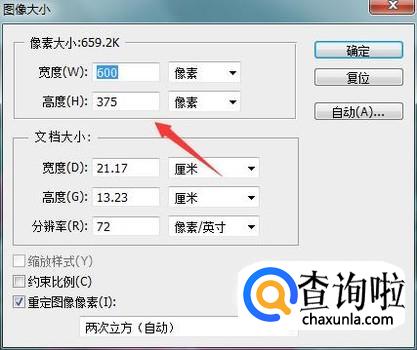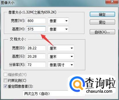点击图像大小选项在弹出的对话框内可以看到当前图片的大小如图所示: