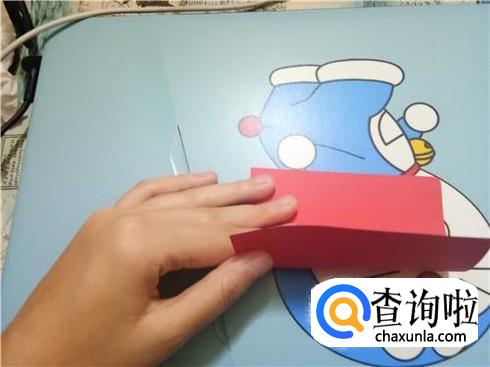 然后,我们沿着刚才对折的中轴线折叠过去,并且用双面胶将刚才折叠的两个小部分粘贴在一起。