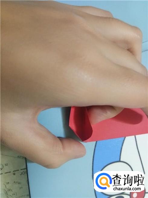 沿着三角形的边线将最外面的一条边轻轻的向内压,另外一个三角形也是如此。