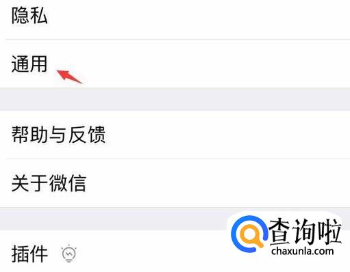 点击通用。一般微信里的各种功能设置都是在通用里的,因此还要点击通用才能进行设置。