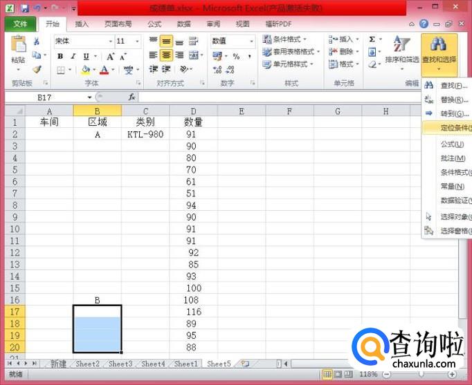 找到“查找和选择”并单击,找到“定位条件”并单击