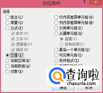 在弹出的对话框中,选择“空值”后,单击“确定”或者直接按“enter”键
