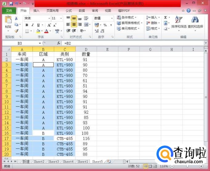 打开Excel,将第一排的所有数据录入,到数据改变的单元格时,再在该单元格输入相应数据,如下图所示:(不同的数据还是要手动录入的哦)