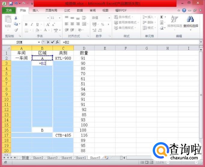 然后我们在它框选的单元格中输入“=上一个单元格的位置”,如我们这里是“B2”