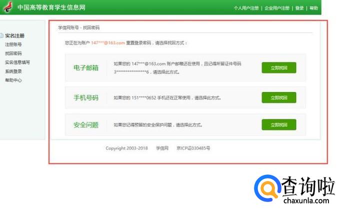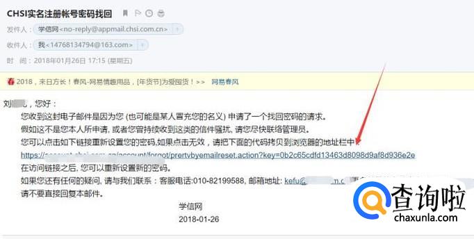 比如我们选择邮箱找回,接着学信网会给你的邮箱里发一封重置密码的邮件链接。