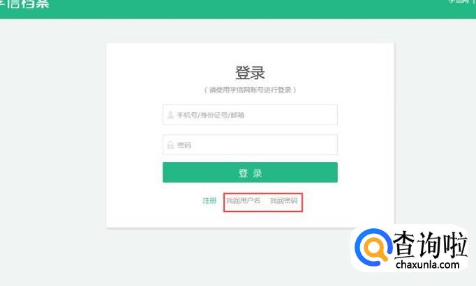 接着点击登录学信档案,在用户名和密码输入框西面分别可以看到“找回用户名”和“找回密码”。