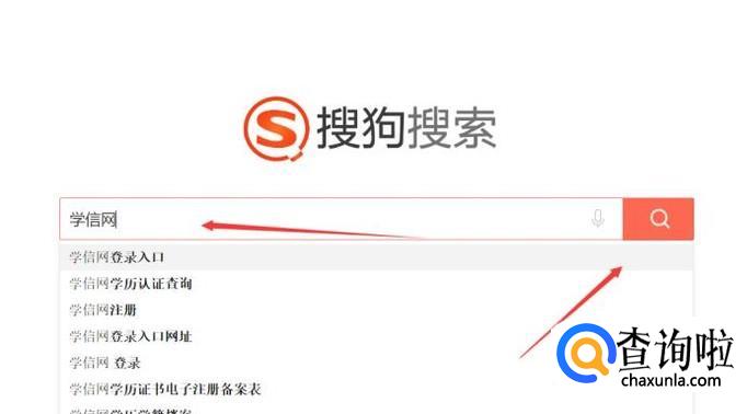 打开搜狗搜索,在搜索框里输入:学信网,并点击搜索。