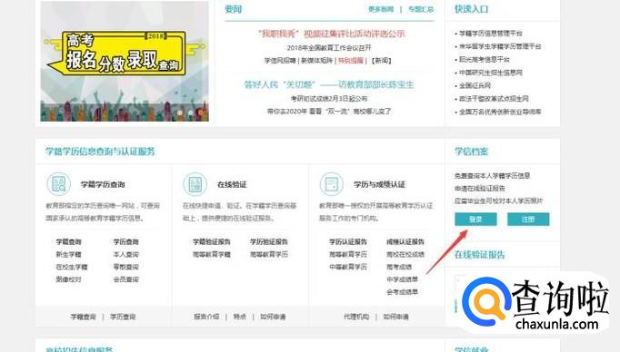 进入官网以后,在学信档案那里点击登录,进入登录页面。
