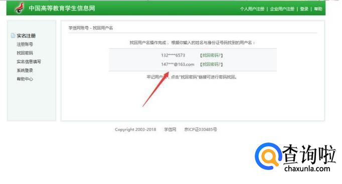 接着会提示用户名找回完成,并把你的用户名罗列在下面。
