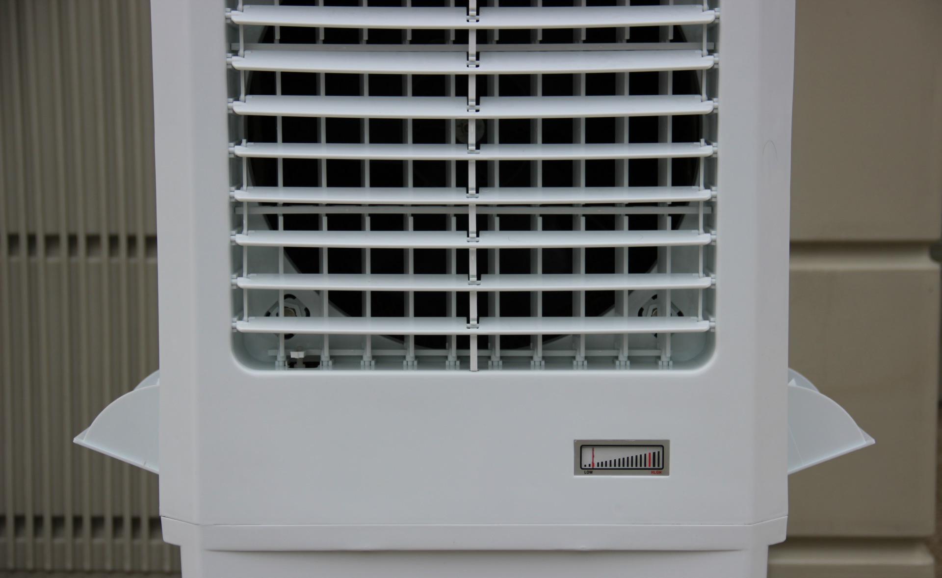 冷气机的结构非常简单,水箱内的水通过泵送到湿帘的上部,水均匀地润湿整个湿帘的接触面,当热空气经过湿帘时,水吸收空气中的大量热量,冷却通过湿帘的空气,同时得到过滤使送出的风变得凉爽、湿润。