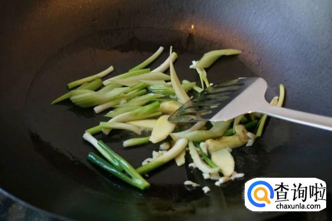 把炒锅烧热,下油及葱白,小火慢炸至葱白微黄。加入青葱段,继续小火慢炸至葱段全部黄色即可将葱捞出,盛出葱油备用。