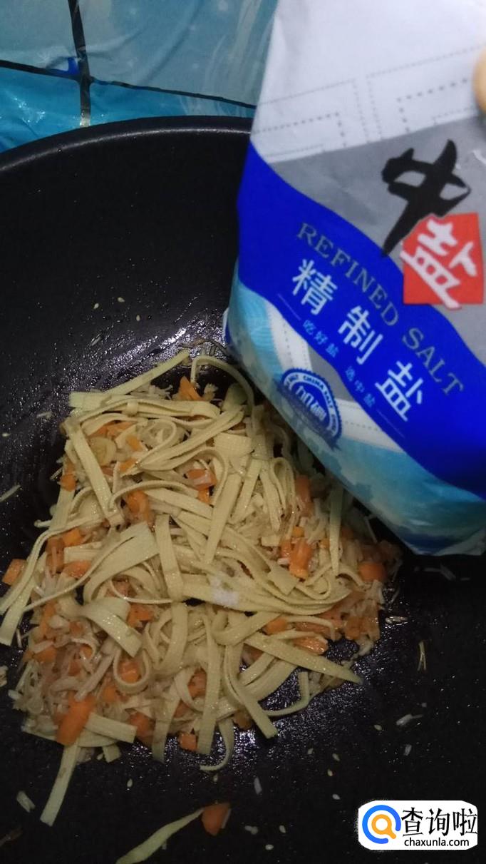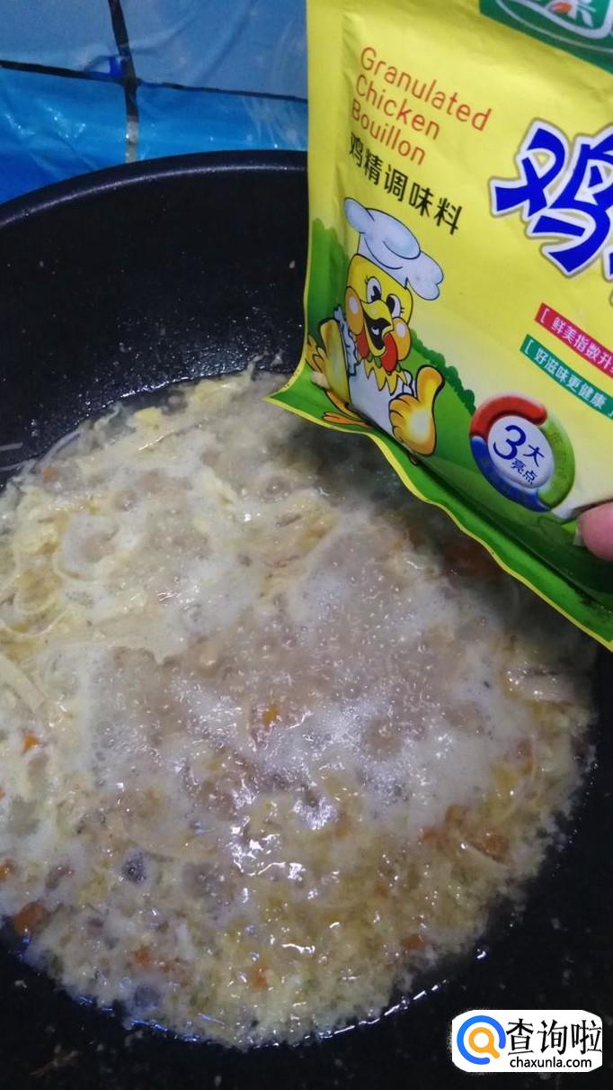 倒入适量盐,五香粉,再加入一大碗清水,将水烧开。