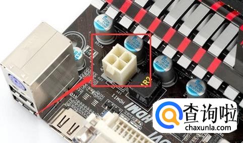 接着把电源的4PIN接口插入主板的CPU4PIN插槽中。