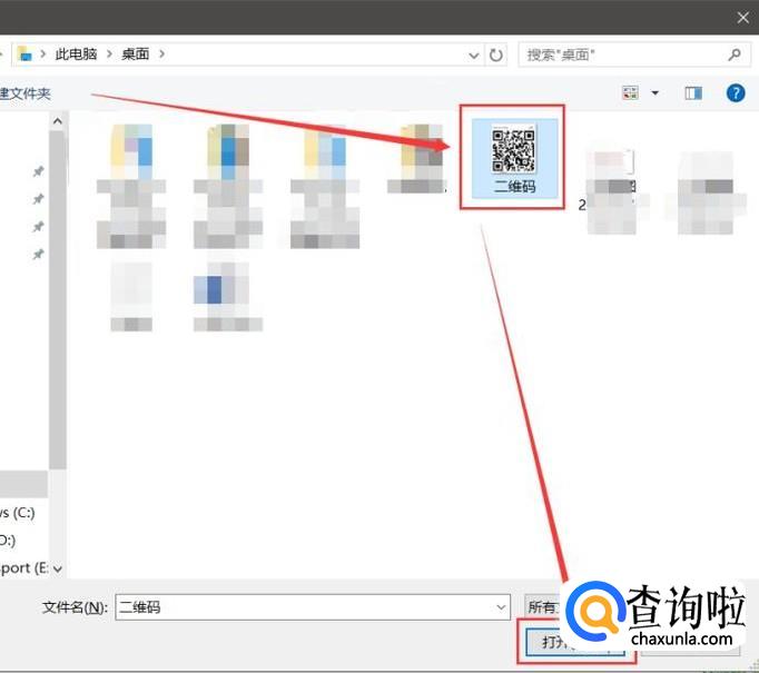 在弹出对话框中选中要识别的二维码,点击打开,片刻后在页面上就会出现识别出来的二维码链接。
