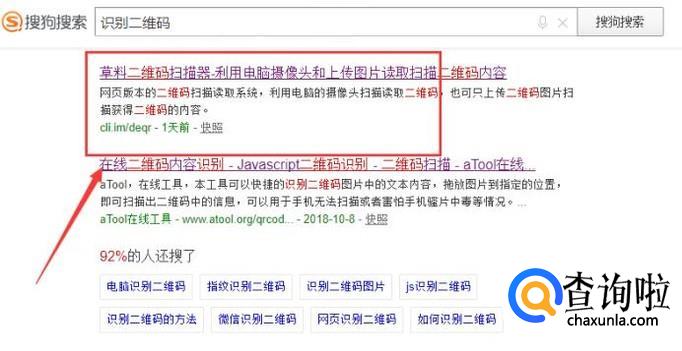 通过搜索工具搜索“识别二维码”,选择进入一个二维码识别网站。
