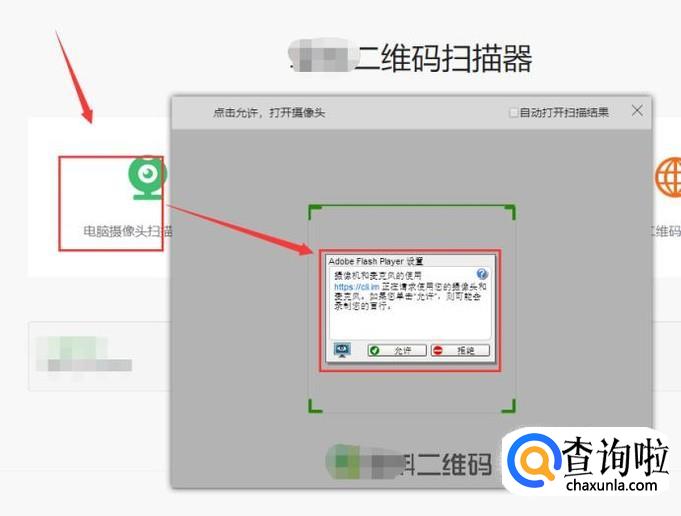 除此之外,还可以选择使用“电脑摄像头扫描二维码”进行识别。