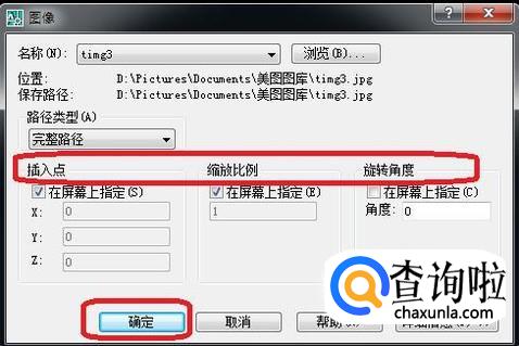 可以指定“插入点”、“缩放比例”和旋转角度,设置完成后,点击确定。