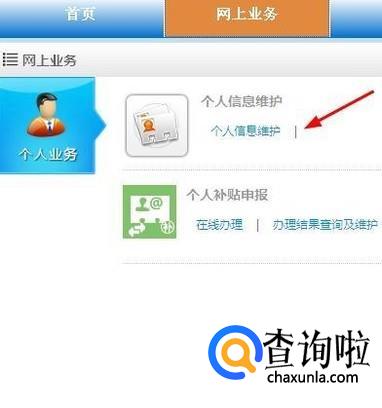 进入页面首页,点击网上业务—个人业务—个人信息维护。