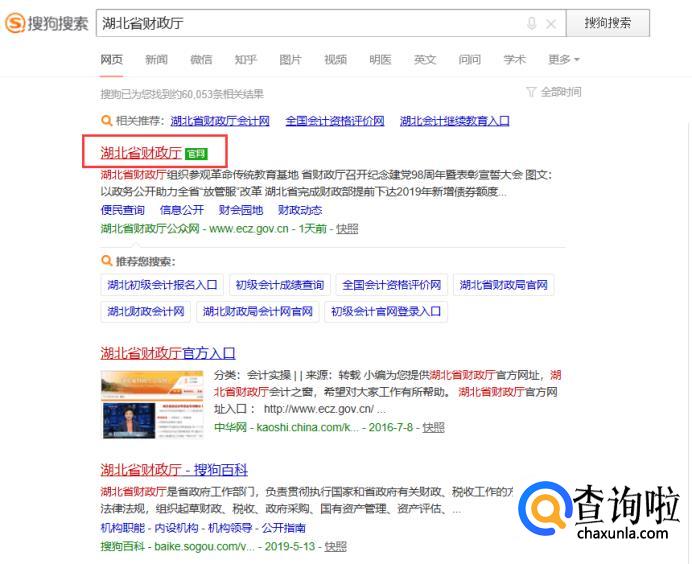 在浏览器里面输入‘湖北省财政厅’,其他地方的,就用‘省会名+财政厅’。