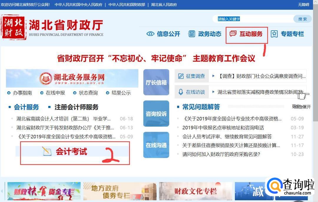 如图所示,点击‘互动服务’——‘会计考试’。