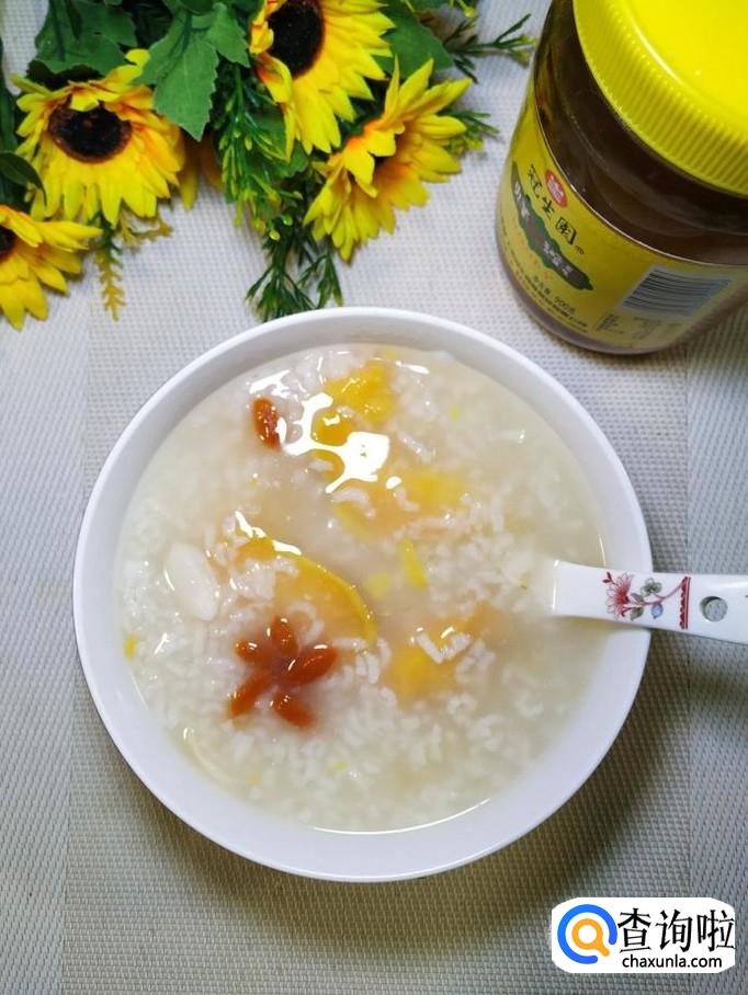 红薯适量,枸杞子适量,百合适量,蜂蜜适量,大米适量。
