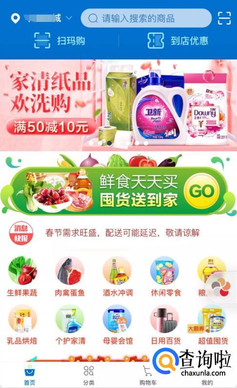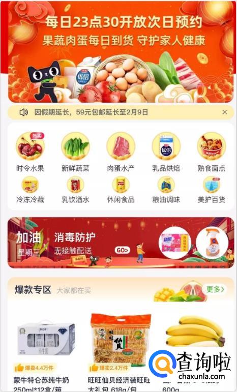 天猫超市每日23:30开放次日配送预约,还特别将配送费由原来的满88包邮改为了满59包邮。