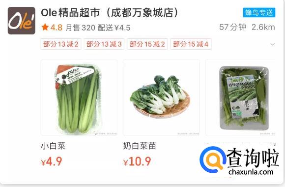 Ole精品超市也线上线下同步营业,并全力支持3公里配送服务,蔬菜价格稳定,且品种齐全。