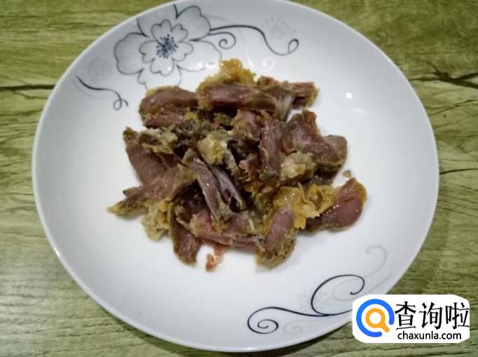 先把腊肉煮熟,然后切片备用。