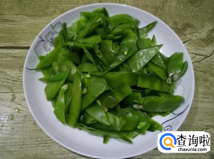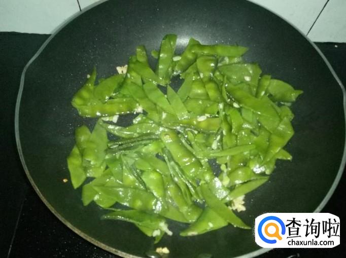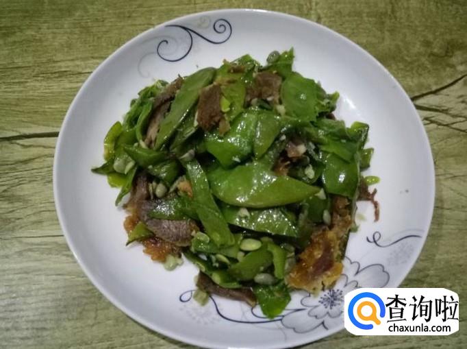 刀豆300g、腊肉100g、大蒜四瓣、盐和鸡精适量