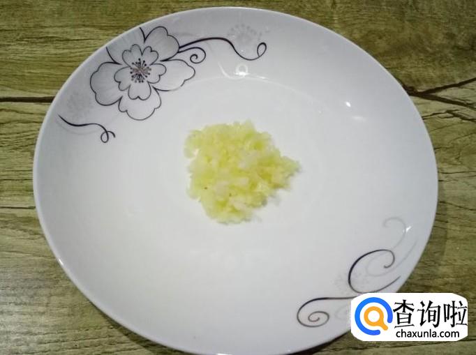 把大蒜切末,装在盘子里备用。