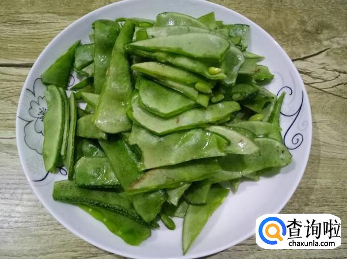 在锅里加入适量的水,煮沸后把刀豆在沸水里焯两分钟左右,去掉豆腥味,然后捞出来控水备用。